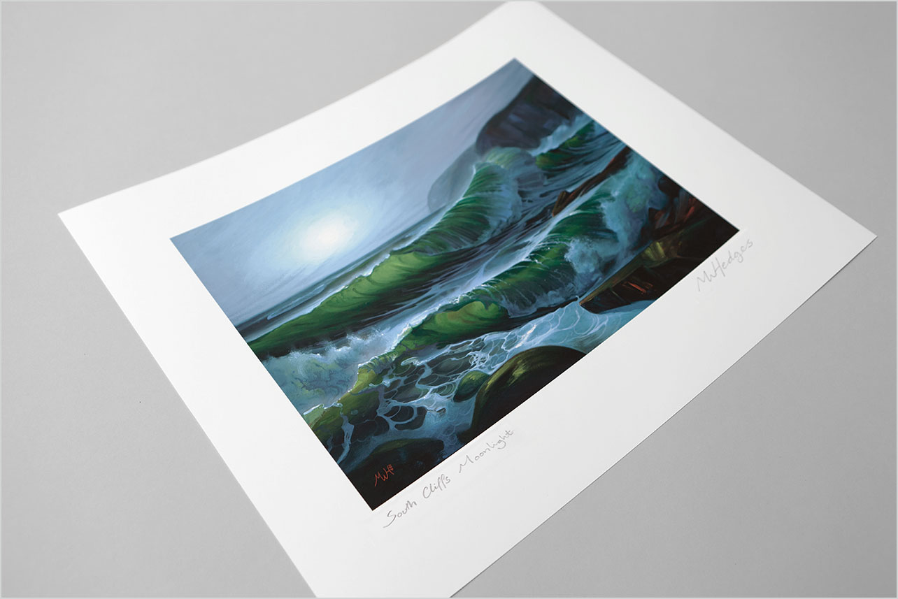 Fine art print available in two sizes (STANDARD or LARGE) signed by the artist. Larger size is 70% bigger (in printed image area) than standard size. STANDARD size is shown above.