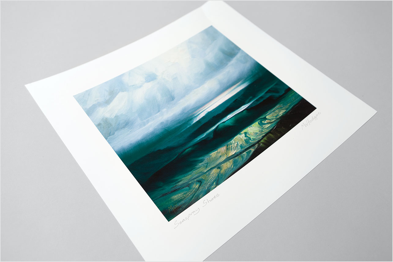 Fine art print available in two sizes (STANDARD or LARGE) signed by the artist. Larger size is 70% bigger (in printed image area) than standard size. STANDARD size is shown above.